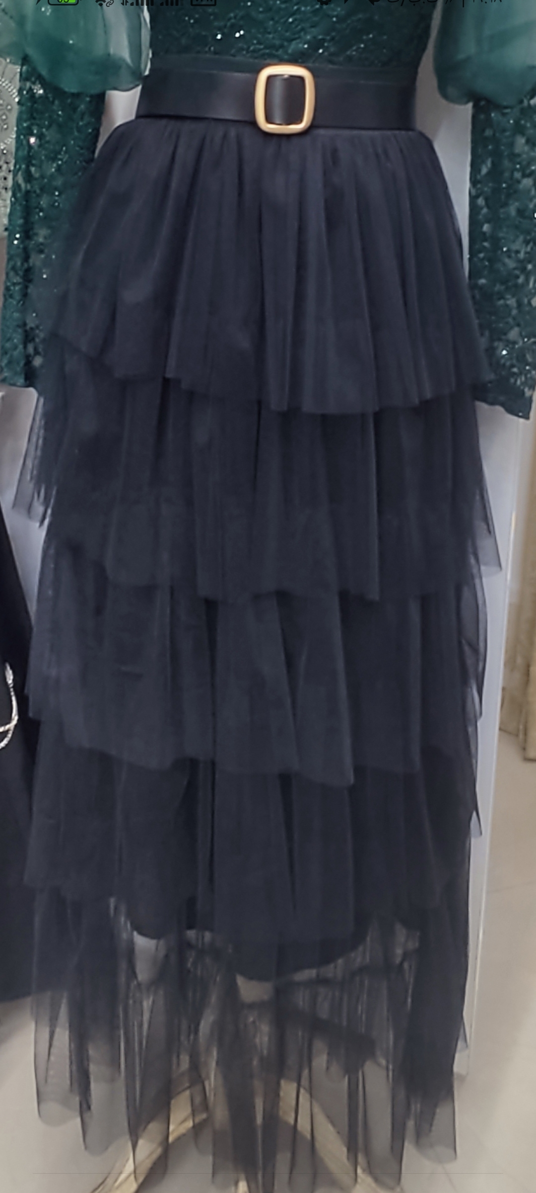 دامن بلند زنانه توری طبقه ای کمر کش