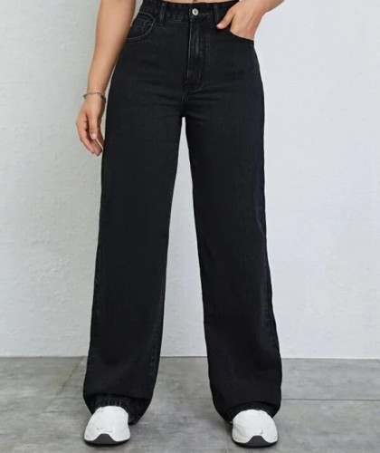 شلوار جین زنانه مدل نیم بگ زغالی