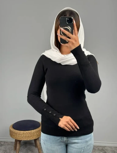 ناموجودبافت زنانه مشکی یقه سه سانت