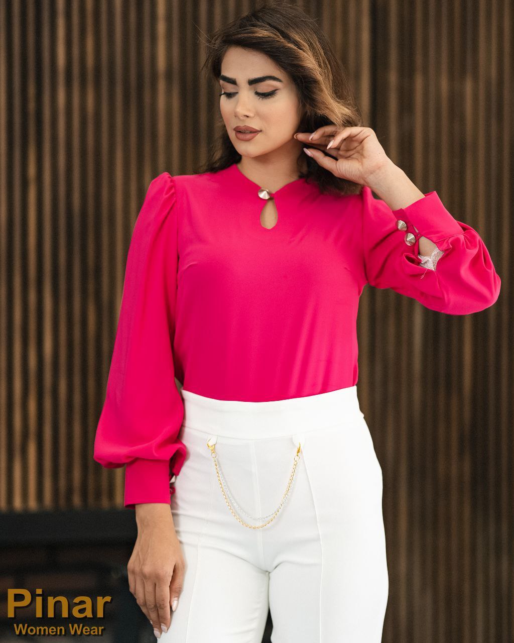 شومیز مجلسی زنانه یقه سه سانت آستین گیپور