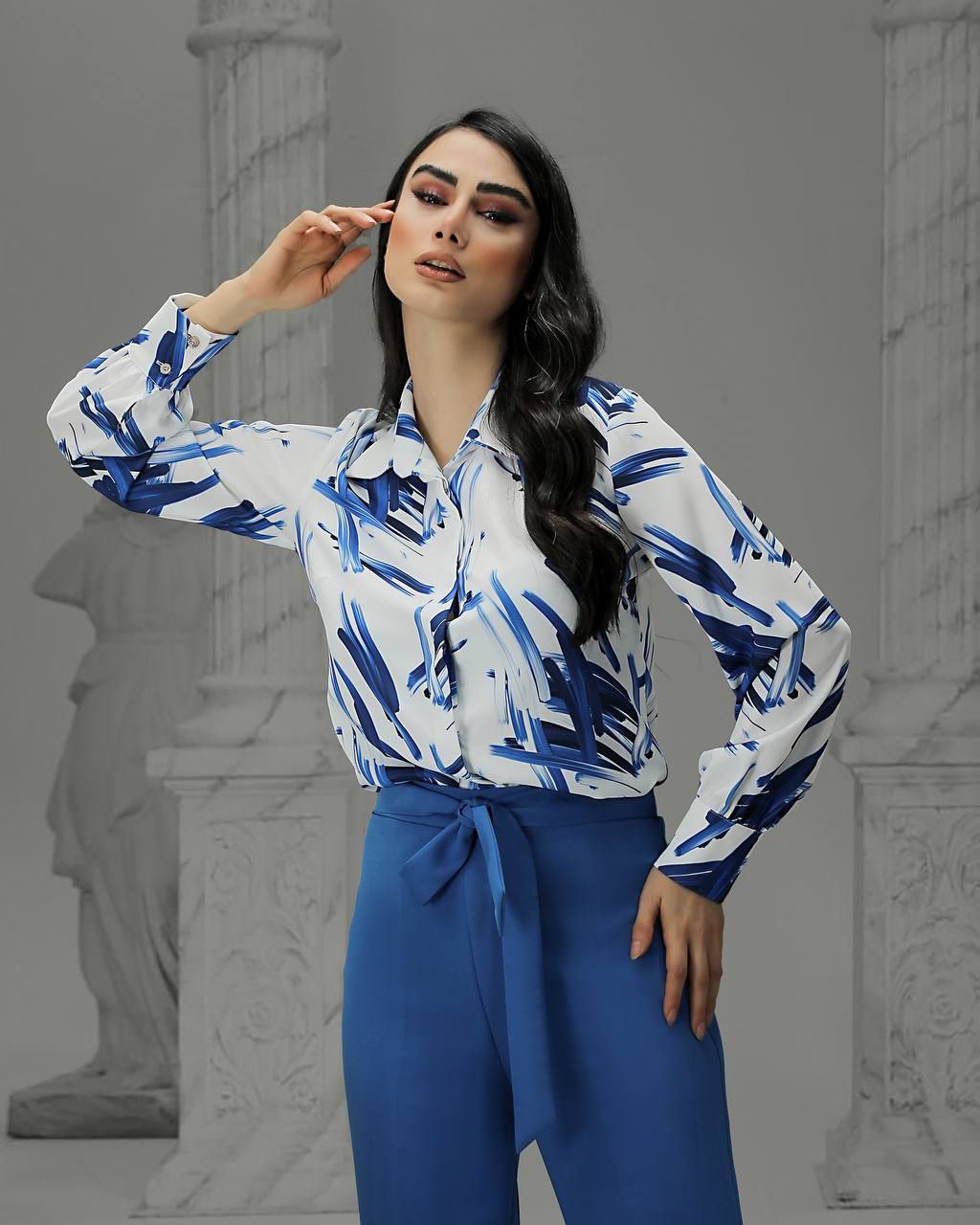 ناموجودشومیز زنانه بیسیک یقه مردانه