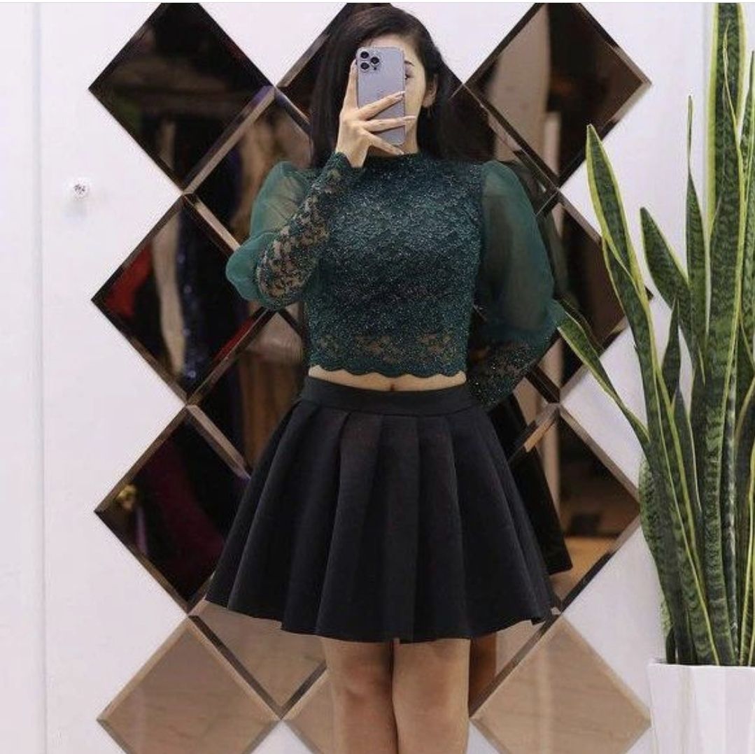 شومیز و کراپ مجلسی زنانه دانتل یقه قایقی