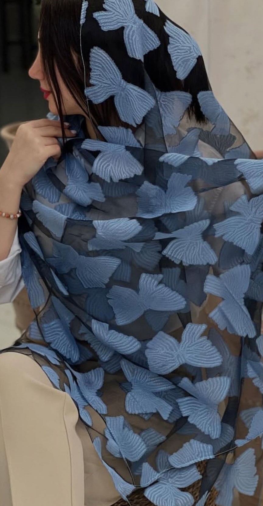 شال مجلسی شیشه ای طرح پاپیون