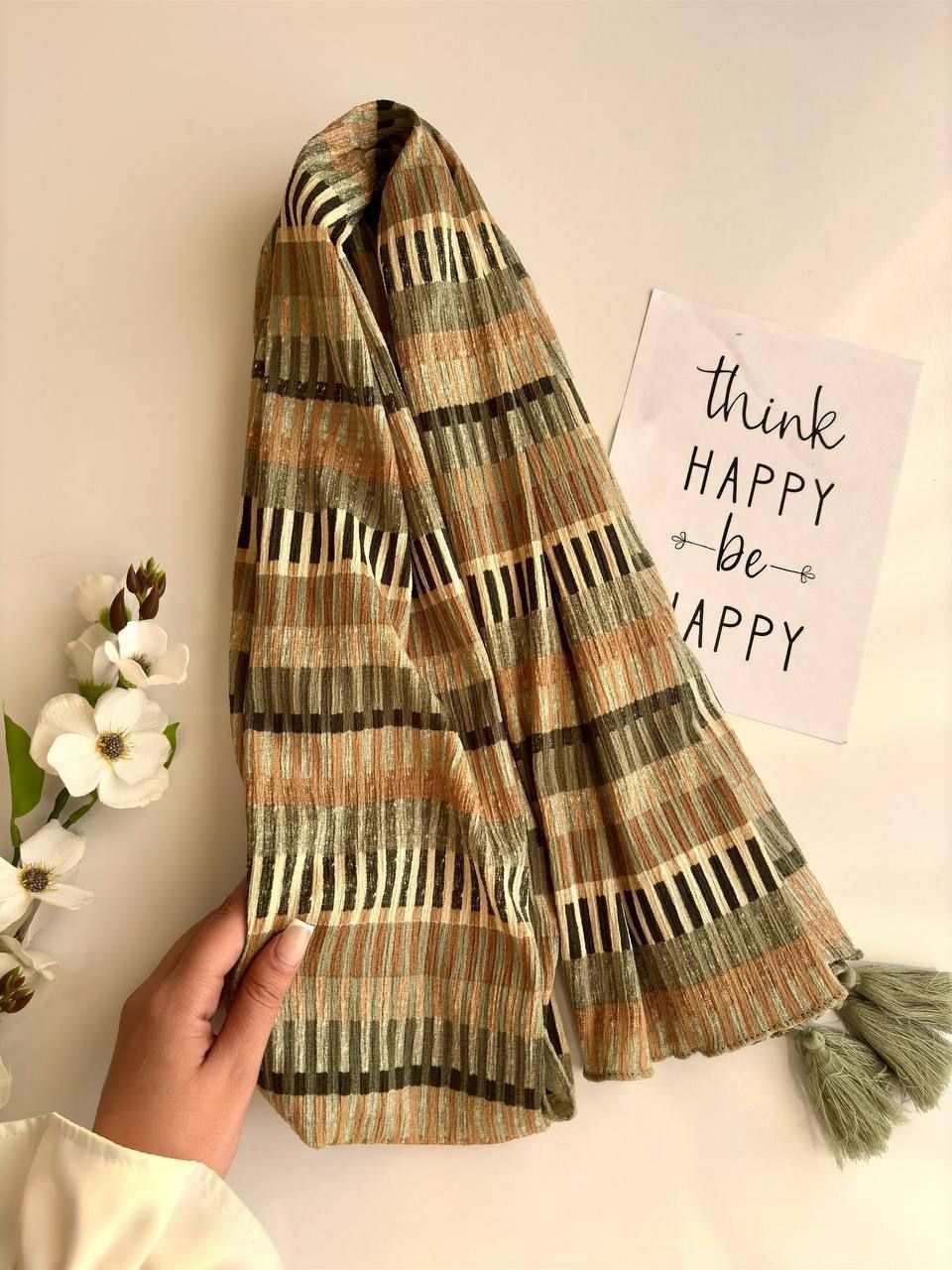 شال پاییزی برشکا طرحدار در طرحها و رنگهای متنوع قواره 70 در 180 سانتی متر مناسب پاییز و زمستان رنگ پایه تمام شال ها کرم نسکافه ای است
