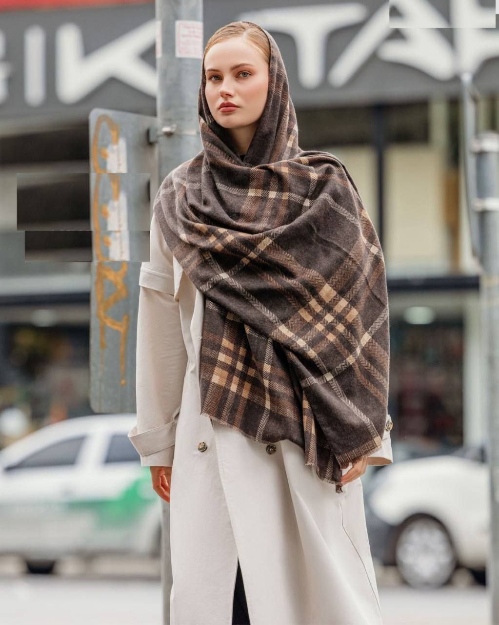 شال پاییزی گرم بالا جنس موهر طرح باربری