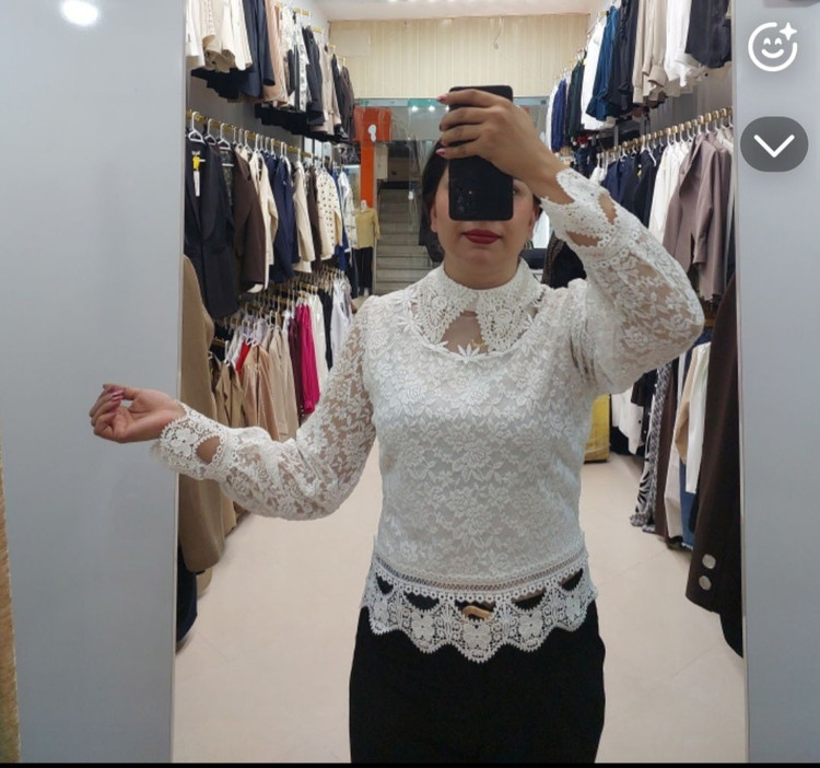 آستین و پایین شومیز با گیپور خاصی کار شده است