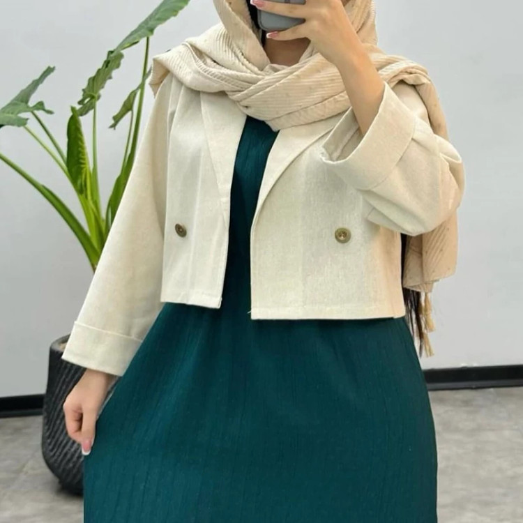 سارافون ب همراه کن کراپ مناسب تابستان و هوای گرم بدون ابرفت و پرز دادن سارافون و کت چون بهم چسبیده نیستن میتوان جداگانه هم استفاده کرد کاری مناسب بیرون و مسافرت سایزبندی عالی مناسب سایز 38 تا 48